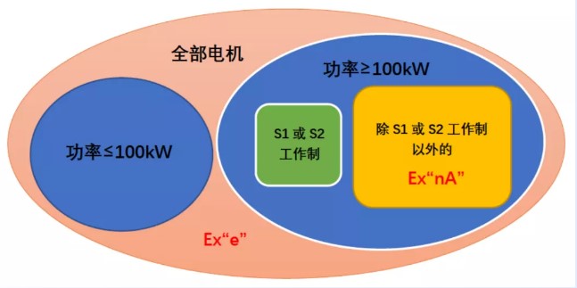 3. 對(duì)鼠籠轉(zhuǎn)子的要求,增安型電機(jī)均需對(duì)照GB3836.3-2010表4《對(duì)于鼠籠轉(zhuǎn)子點(diǎn)燃危險(xiǎn)因數(shù)的潛在的氣隙火花危險(xiǎn)評(píng)價(jià)》進(jìn)行評(píng)定,而對(duì)于無(wú)火花型電機(jī)而言,只有額定輸出大于100kW、S1或S2工作制除外的電機(jī)才需依照 GB3836.8-2014 表6《鼠籠轉(zhuǎn)子點(diǎn)燃危險(xiǎn)因數(shù)的潛在氣隙火花危險(xiǎn)評(píng)價(jià)》進(jìn)行評(píng)定(區(qū)別見圖1),進(jìn)而決定是否需要采取額外措施以保證電機(jī)起動(dòng)和運(yùn)行時(shí)不會(huì)發(fā)生引爆。