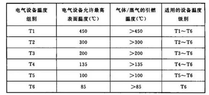 每種性氣體均可根據(jù)最大試驗(yàn)間隙或最小點(diǎn)燃電流比來進(jìn)行分級(見表2),按引燃溫度進(jìn)行分組(見表3),而對于性粉塵,則不再劃分級別和組別,而是對性粉塵分級并標(biāo)注設(shè)備的最高表面溫度。