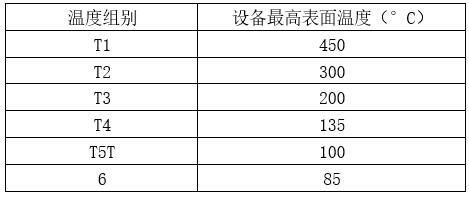GB3836系列防爆標(biāo)準(zhǔn)規(guī)定了6個(gè)溫度組別,分別是: