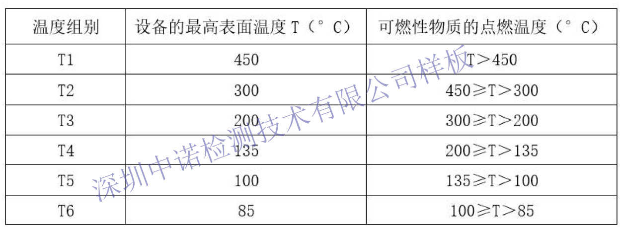 T6:溫度級(jí)別為T6,設(shè)備最高表面溫度不超過85°C